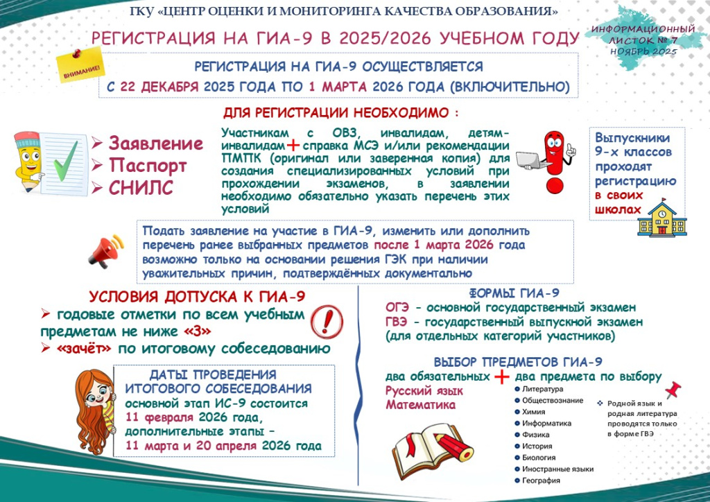 Регистрация на ГИА-9 осуществляется с 25 декабря 2023 года до 1 марта 2024 года (включительно).