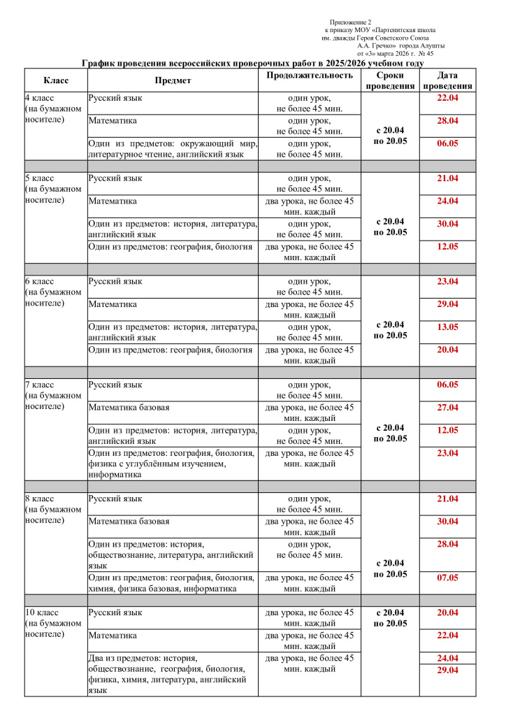 Приказ МОУ «Партенитская школа им. дважды Героя Советского Союза А,А.Гречко» города Алушты от 03.03.2026 №45 О проведении ВПР.pdf Приказ УО от 27.02.2026 №65 О проведении ВПР-2026.pdf